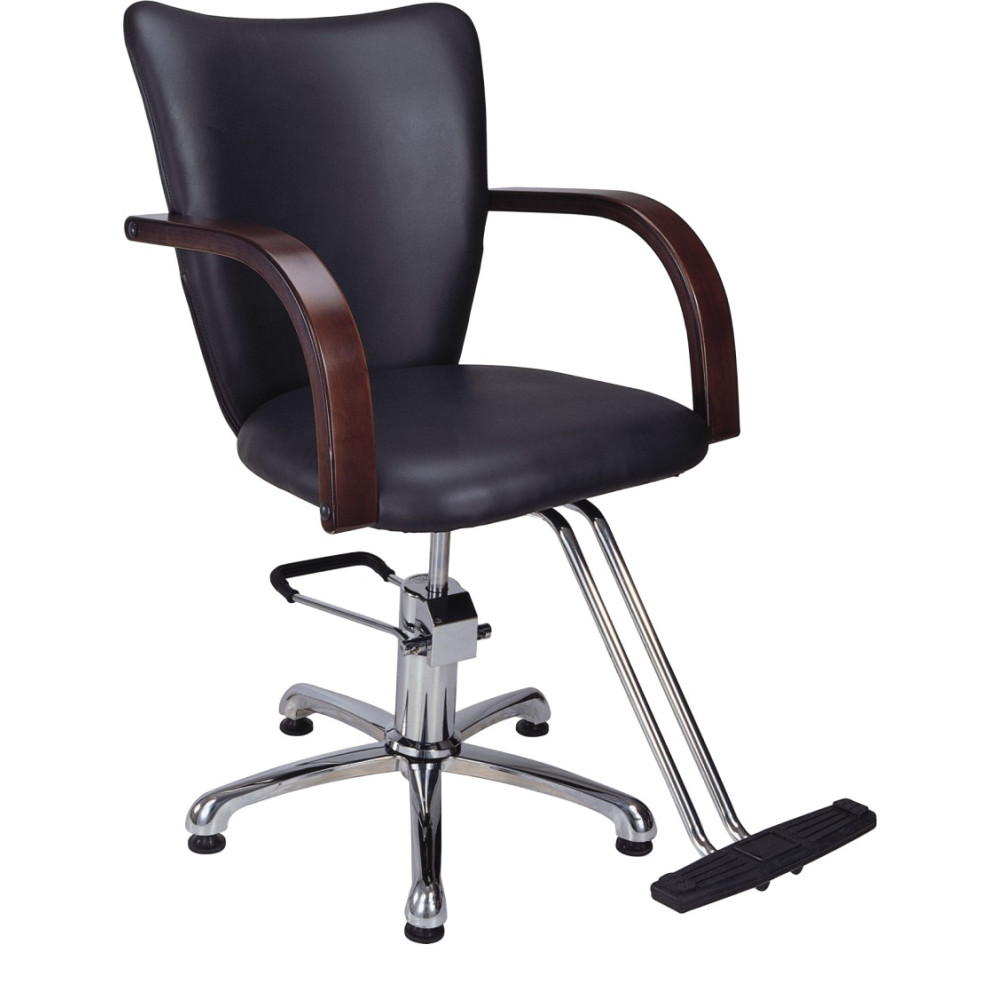 Кресло клиента. Имеет пятилучевую металлическую базу, комплектуется гидравлическим подъемником и съемной подставкой для ног. Обивка - кожзаменитель.