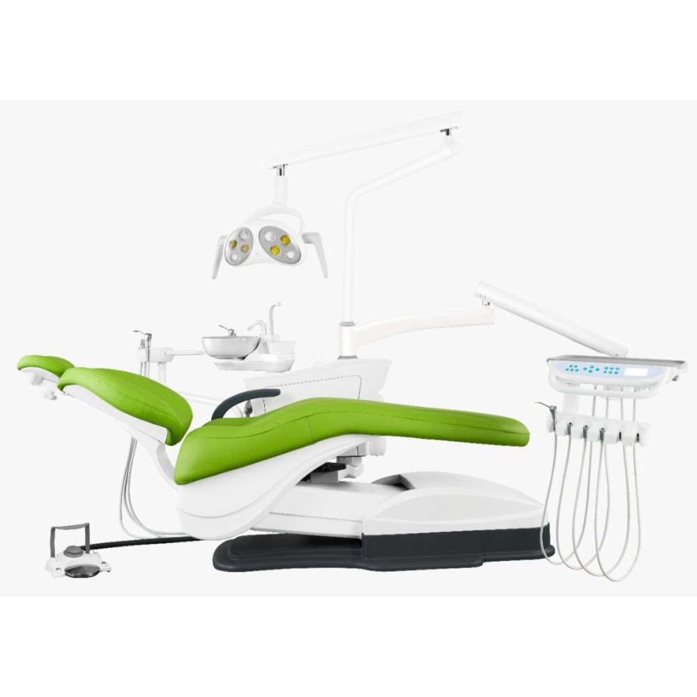 - мембранная панель управления (управление креслом. 2 запрограммированных положения кресла, наполнение стакана, смыв плевательницы, подогрев воды, кнопка Set (установить) для программирования параметров) 3 программируемых положения кресла;