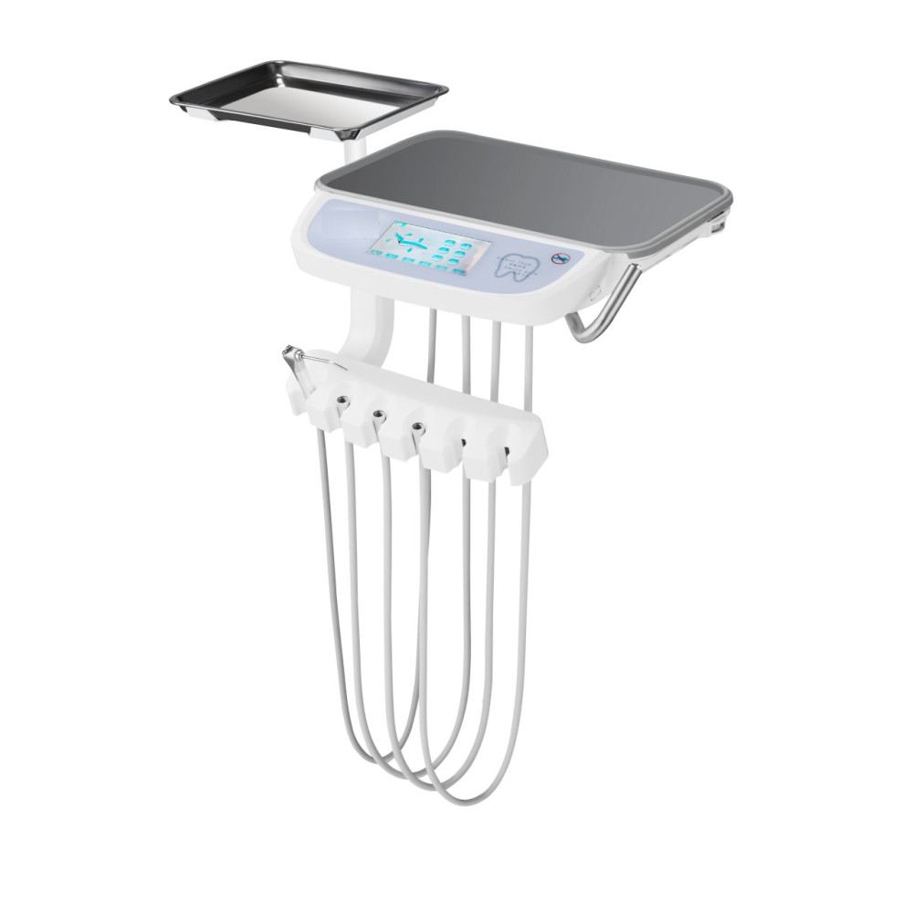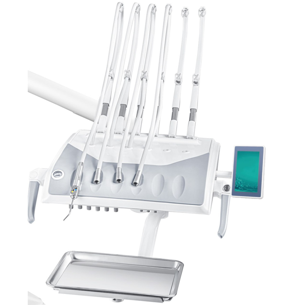 - на пантографической консоли с подводом шлангов и регуляторами подачи воды и воздуха на каждый инструмент с возможным размещением 6 инструментов;